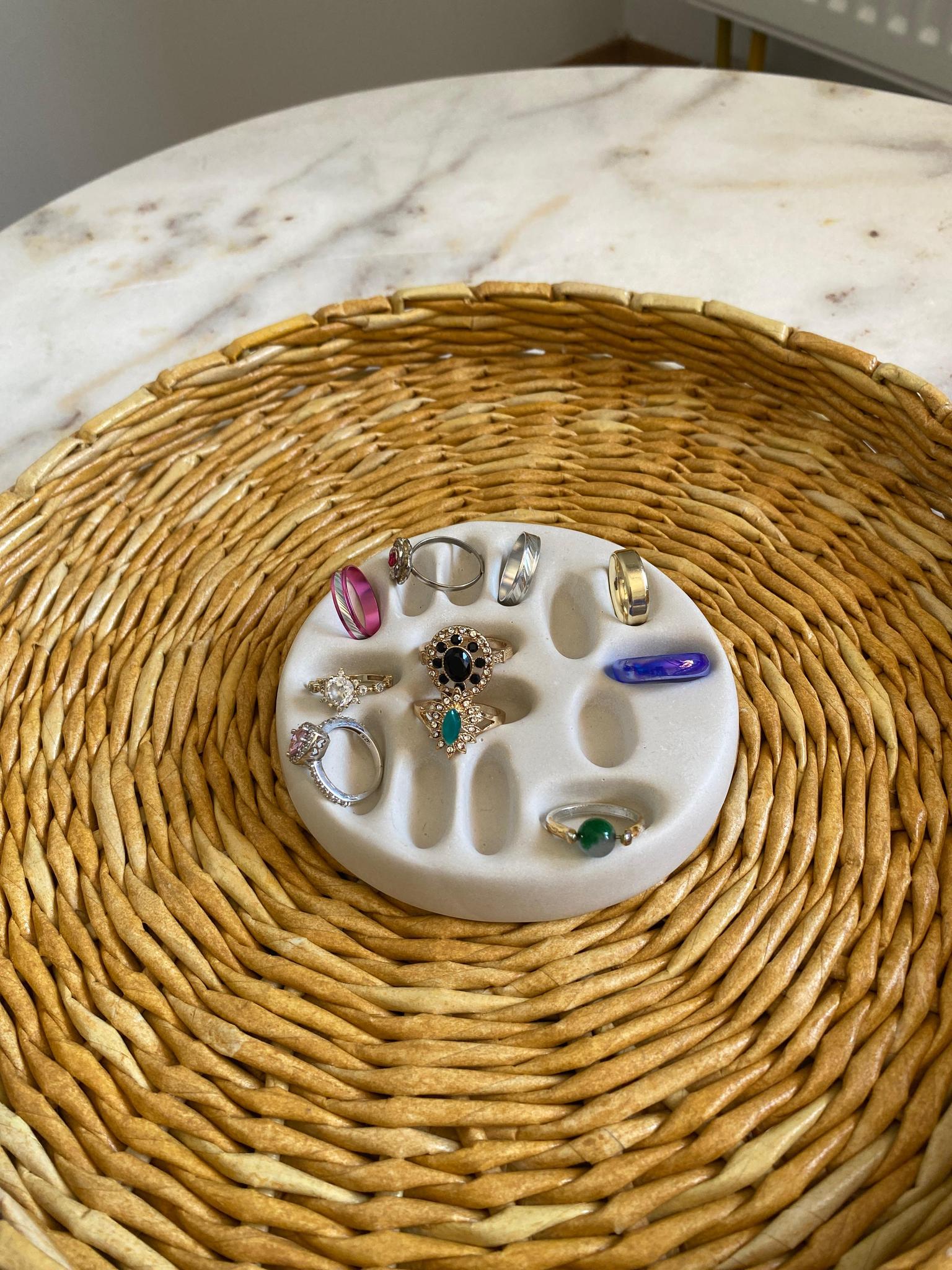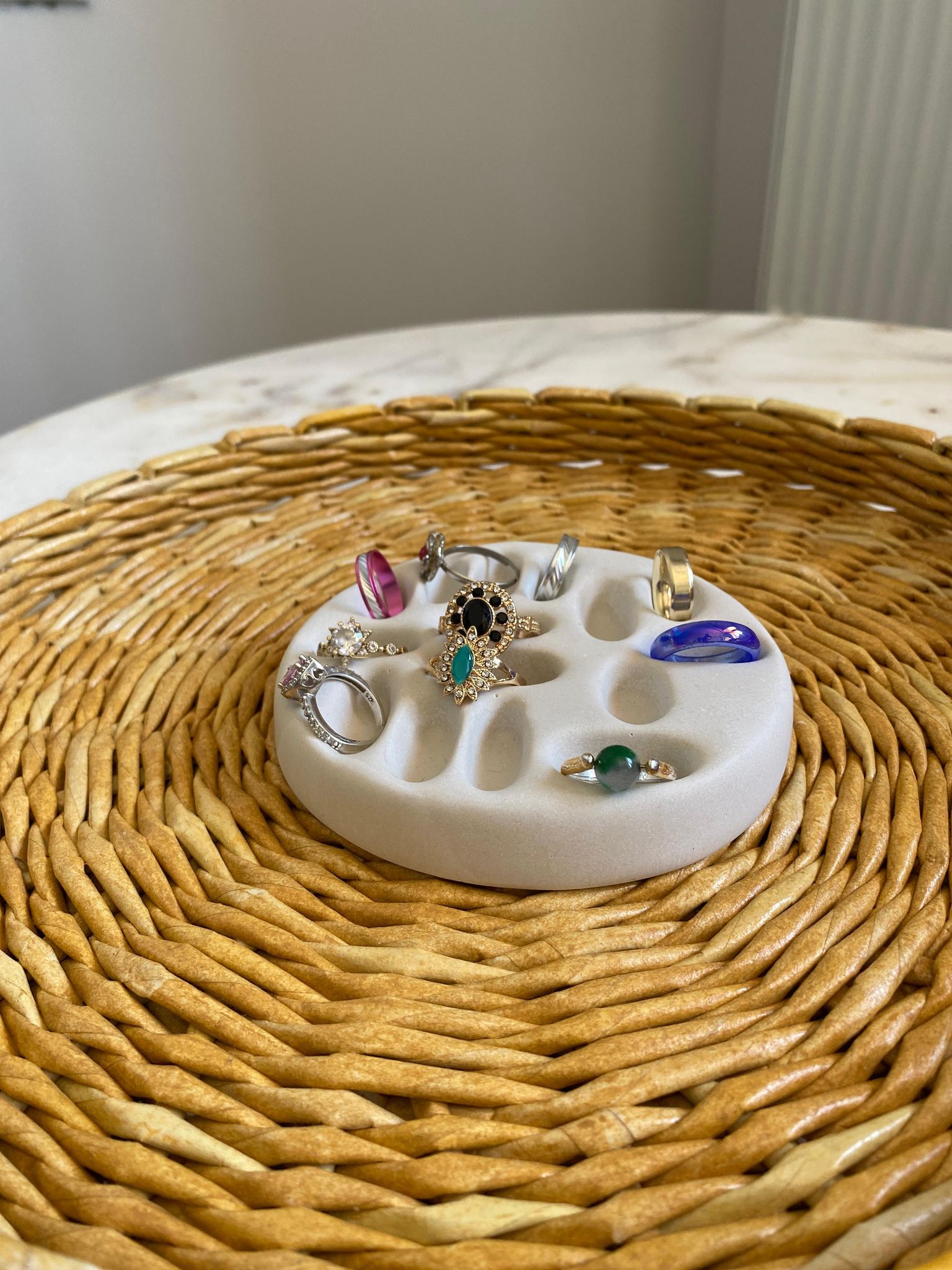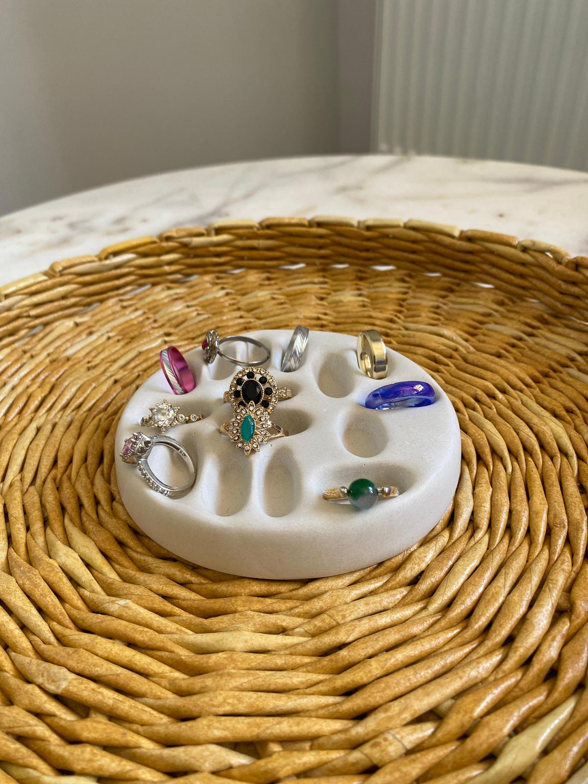 - Modern tasarımıyla dikkat çeken bu beton yüzük kutusu, evinizin dekorasyonuna şıklık katıyor.