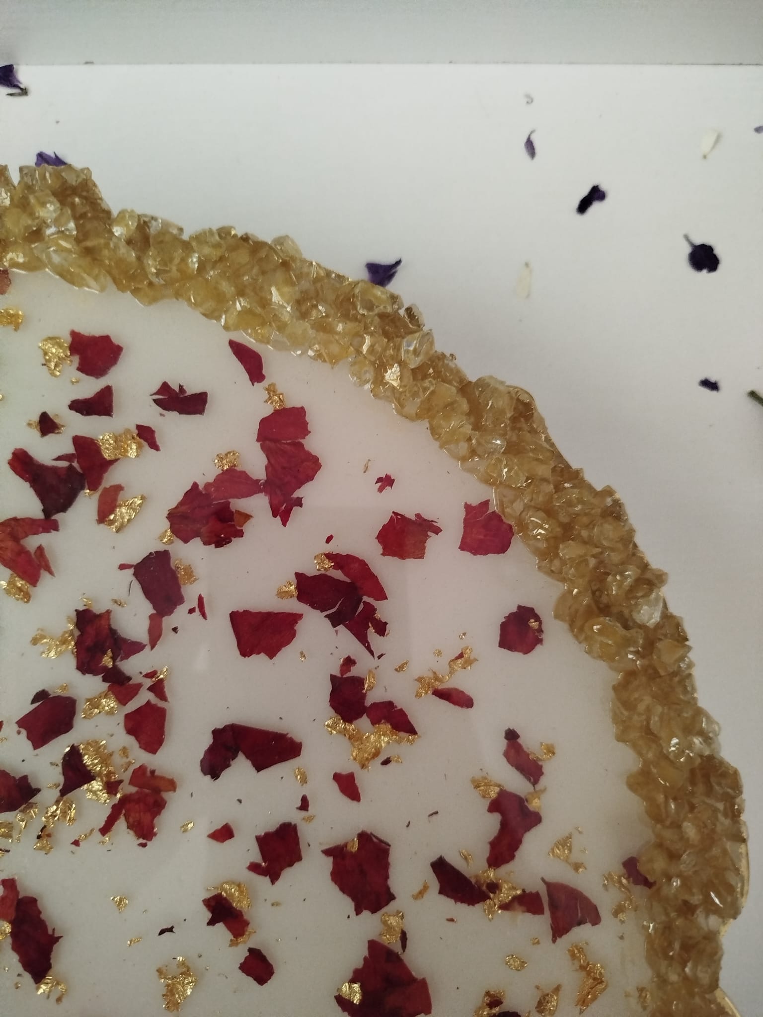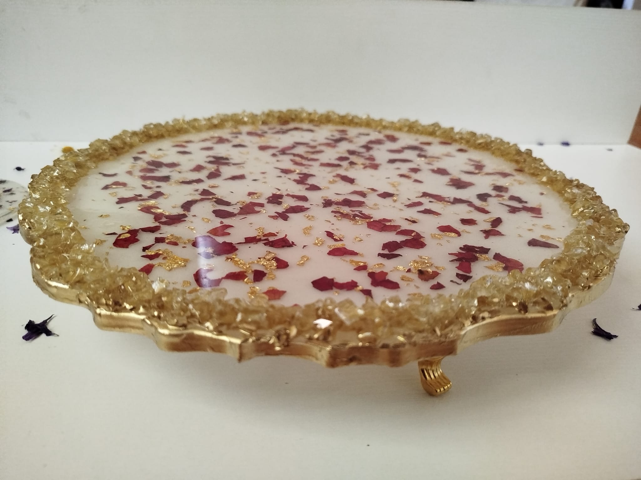 EPOKSİ ALTIN VARAKLI TEPSİ, evinizin güzelliğine güzellik katacak, misafirlerinizi büyüleyecek ve onlara unutulmaz bir deneyim sunacaktır. Çiçeklerin canlılığı ve doğallığı, tepsinin şeffaf epoksi tabakası altında korunmaktadır. Bu sayede yıllar boyunca ilk günkü gibi tazeliğini koruyacaktır.