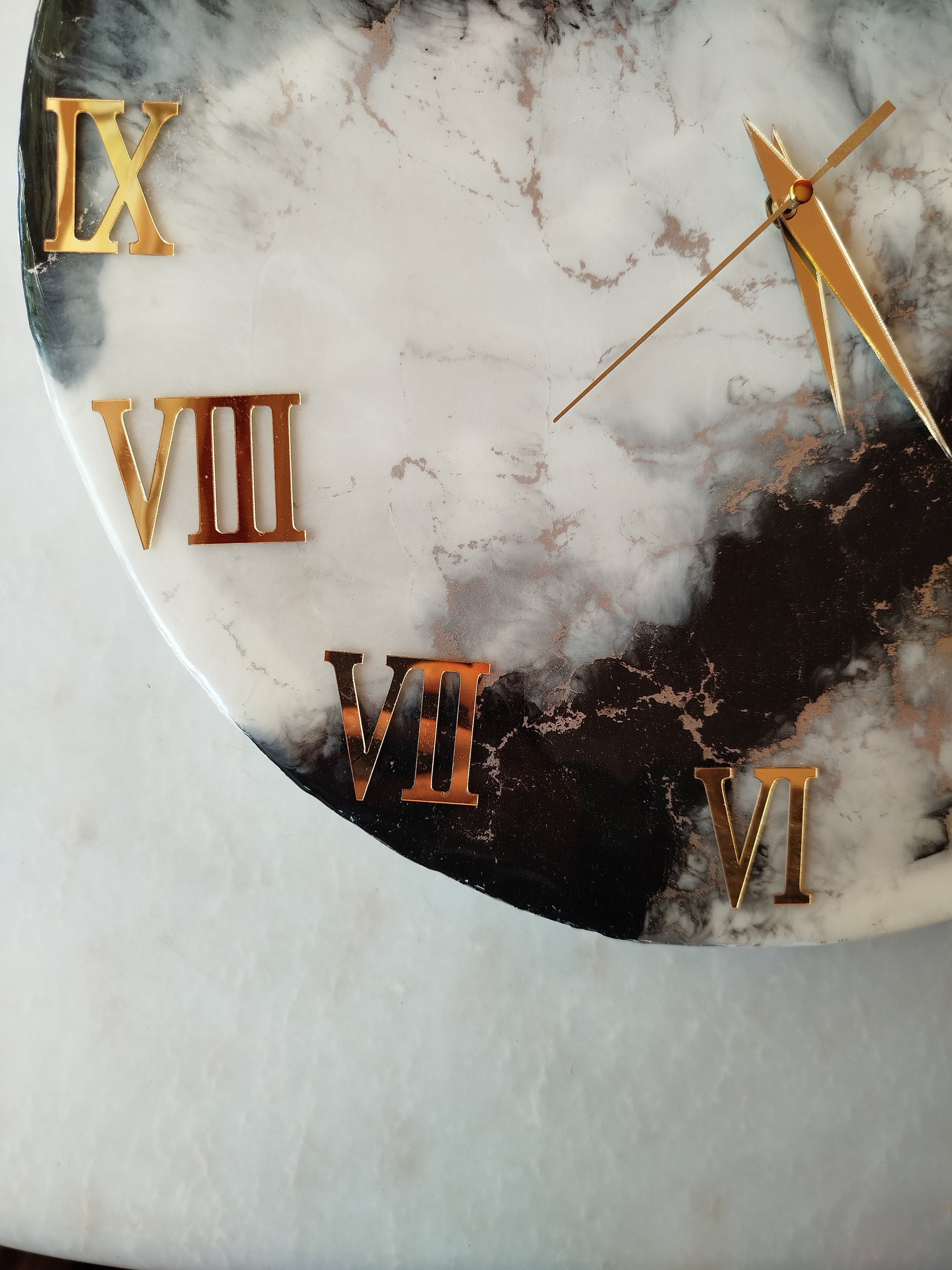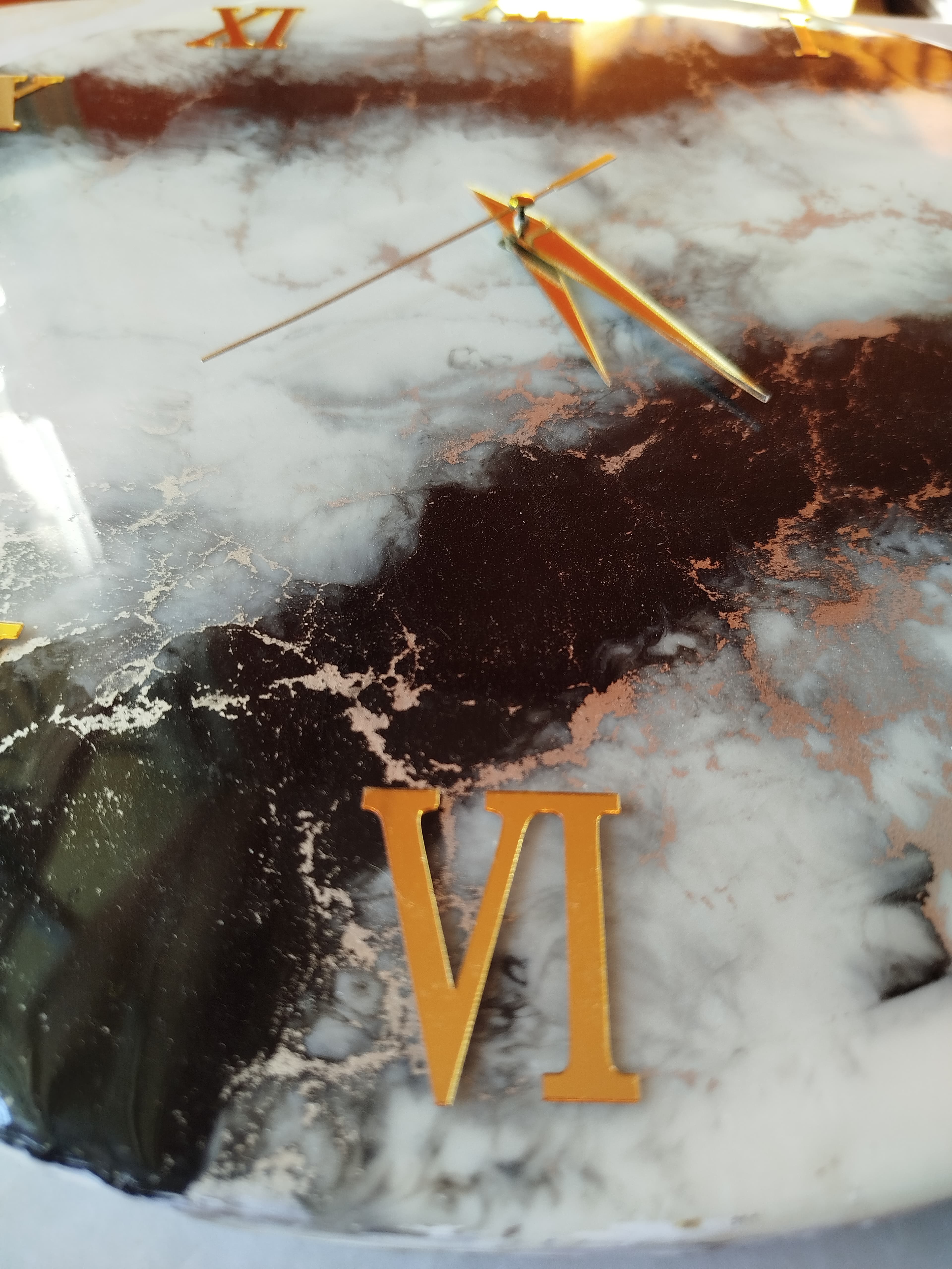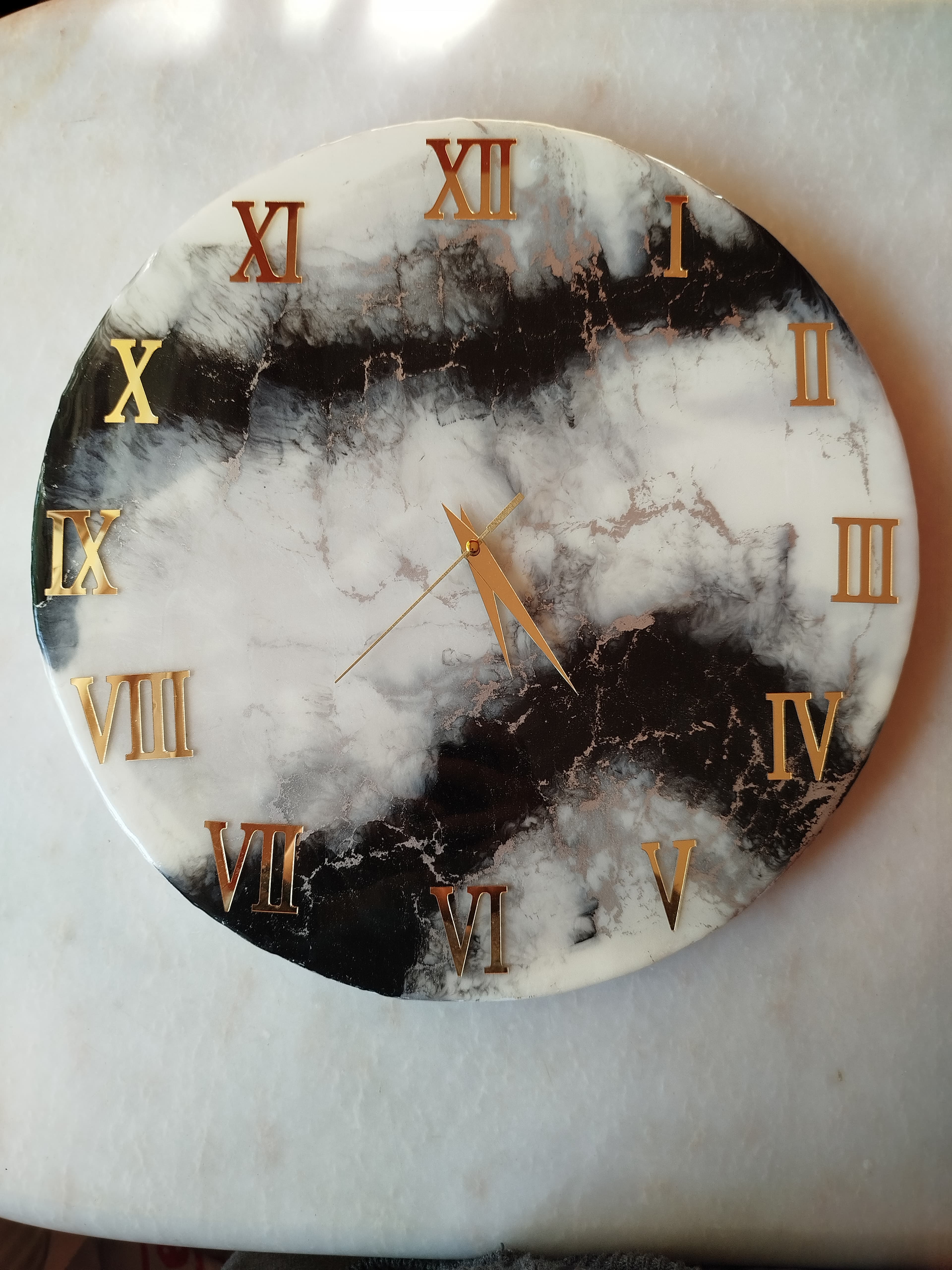 Ürünün göz alıcı tasarımı, herhangi bir odaya sofistike bir hava katmak için idealdir. Epoxy mermer görünümü, modern ve şık bir tarzı benimseyen evler için mükemmel bir seçimdir. Duvar saatinin çarpıcı görünümü, zengin ve derin renklere sahip bir epoksi mermer desenine sahiptir ve odanızda kendine özgü bir şıklık yaratacaktır.